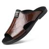 2025 Summer New Men Slippers Luxury Leather Men Sandals Comfortable Soft Sole Beach Shoes Fashion High Quality Men Flat Sandals