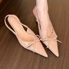 Hot Selling 2025 Versatile Womens Sandal with Slim Heel Close Toes Elastic Band Bow Anti Slip Summer Outdoor PU Fashion Sandals