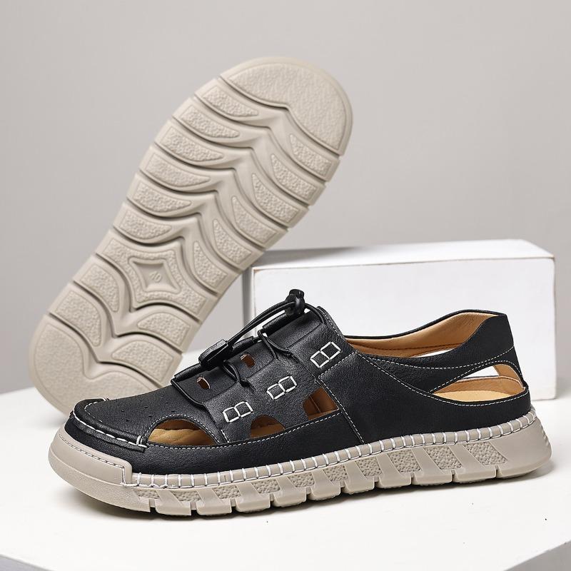 Sandals for Men Retro Handmade Leather Sandals Summer Hollow Out Leather Sandal Outdoor Casual Sport Sandals for Men Beach Shoes