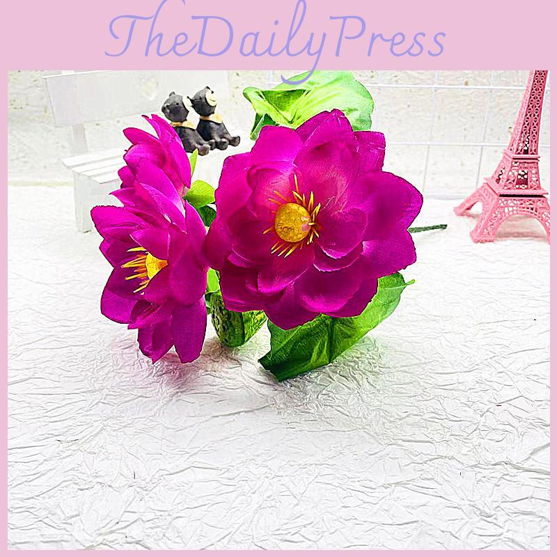 This artificial lotus and water lily bouquet features three realistic silk flowers Made from high-quality silk,providing a lifelike display. Ideal for wedding dcor, outdoor settings, photography props, and home decoration. Wipe gently with a damp cloth to clean.