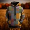 Men's Geometric Plaid Hoodie Sweatshirt Fashion Daily Crew Neck Home Party Streetwear Orange Brown Drawstring Fall Winter Designer