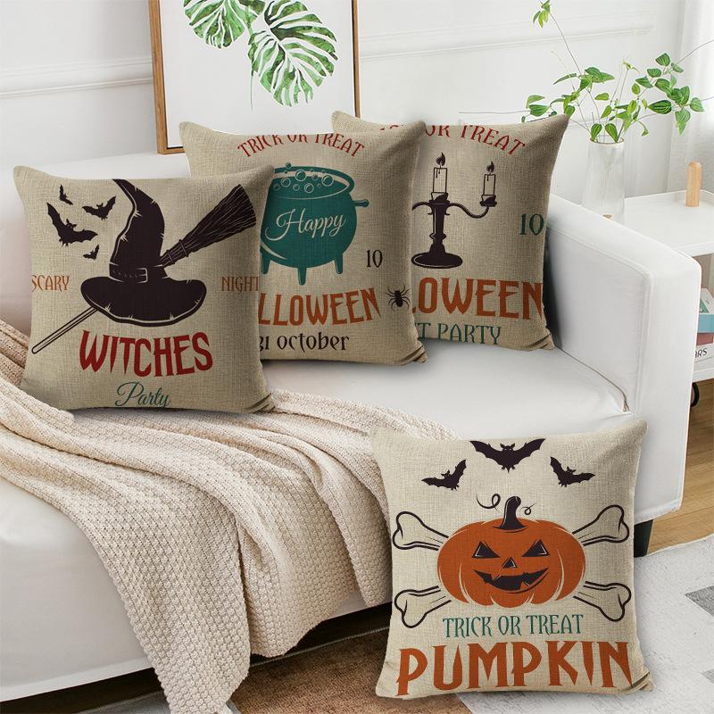 Halloween Pillow Cover Linen Pumpkin Text Sofa Cushion Cover Home Living Room Waist Cushion