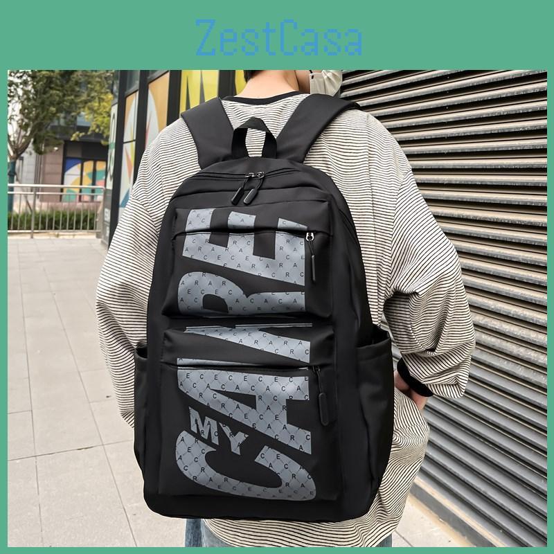 This school backpack features a lightweight nylon construction with a 20-35L capacity, Its minimalist design showcases letter prints and printed patterns, ideal for casual travel and daily campus use. The curved shoulder straps enhance comfort during extended wear. Wipe with a damp cloth to clean.