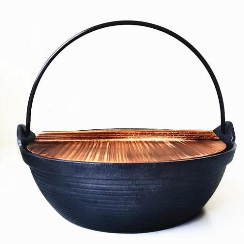 Iron Sukiyaki Pot for 1-2 People, Includes Wooden Lid, Induction Cooking Compatible, Compatible with All Heat Sources, Tabletop Pot with Handle, Light