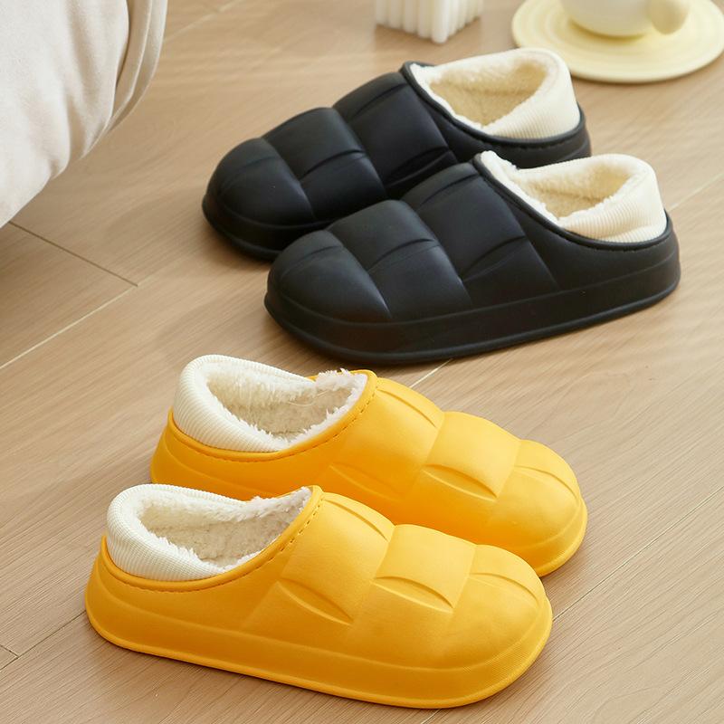 Waterproof Home Petal Cotton Shoes Autumn and Winter Warm Couple Thick-soled Bag and Velvet Slippers
