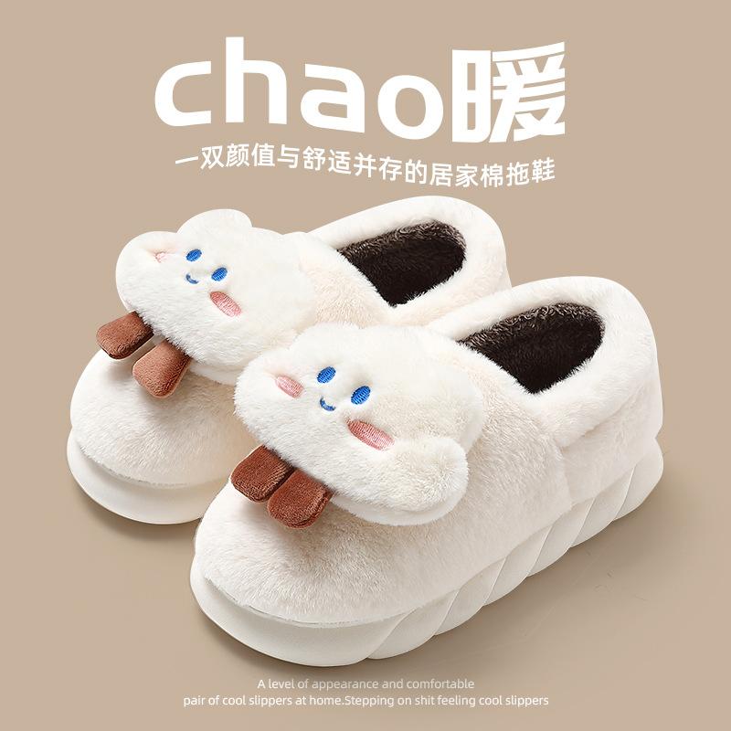 Cute Cloud Bag and Cotton Slippers Autumn and Winter Home Indoor Plush Warm Thick-soled Plush Slippers