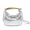 Women's Hand-Woven Crescent Bag with Metal Handle - Sardine Dumpling Style
