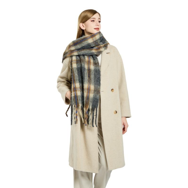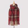 Autumn and Winter Wool Plaid Scarf Women's High-end Imitation Cashmere Versatile Simple Warm Thickened Fringed Scarf