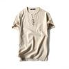 Experience comfort and style with this Men's Chinese-Style V-Neck Linen T-Shirt. Perfect for summer, this short-sleeved top is crafted from a breathable cotton blend that ensures a cool and relaxed fit. The solid color design is complemented by a subtle striped pattern, adding a touch of sophistication to any casual ensemble. Made with a durable polyester fiber, this shirt strikes the perfect balance between fashion and function, making it a versatile addition to your warm-weather wardrobe.