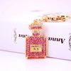 Elegant Diamond-Studded Four-Leaf Clover Keychain: Perfume Bottle Bag Charm for Women