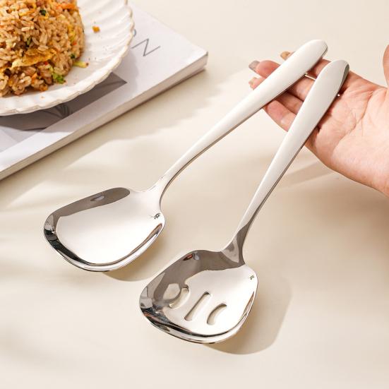 This stainless steel serving spoon is a must-have for any kitchen or catering establishment. Crafted from high-quality 304 stainless steel, it is built to withstand high temperatures and resist corrosion, ensuring food safety in hotels, restaurants, buffets, and more. The sturdy and durable construction makes it ideal for frequent use in various settings, from canteens to family dinners.