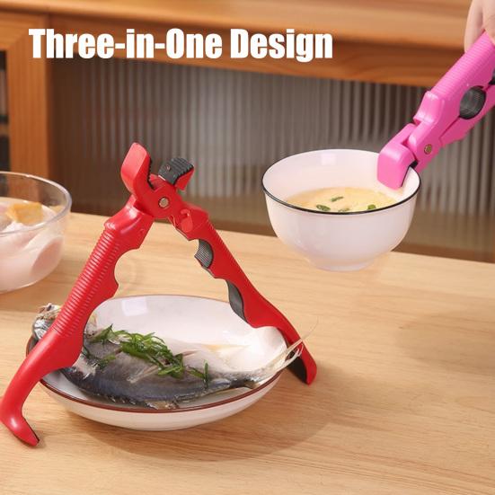 3-in-1 Hot Plate Gripper Tongs Heat Resistant Bowl Tongs Non-Slip Plate Lifter with Built-in Bottle Opener & Lock Anti-Scald Kitchen Clamp