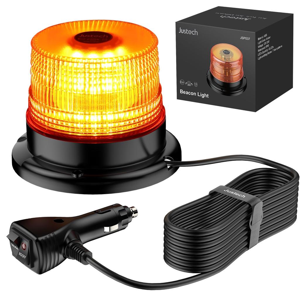 Justech LED Rotating Warning DC 7 Flashing 40 IP65 Waterproof and Control Industrial Signal Omnidirectional Magnetic Certified Suitable for Work Fire