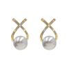 925 Silver Needle Korean X-Letter Pearl Stud Earrings - Retro French Style for Women