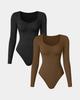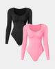 Seamless Knitted Ribbed Long Sleeve V-Neck Yoga Bodysuit Jumpsuit
