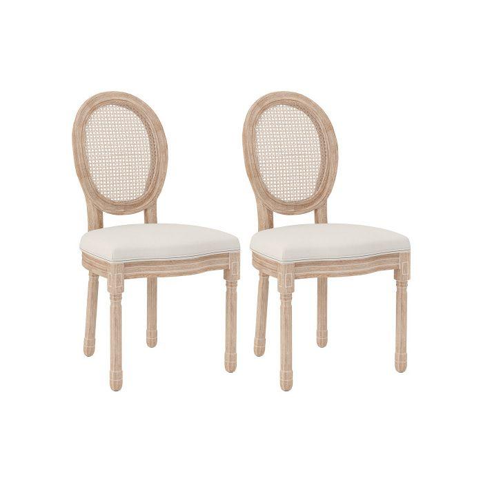 Dining Chairs - MUVOE - Set of 2 - Linen Fabric &; Rattan - Solid Wood Legs - Vintage Style