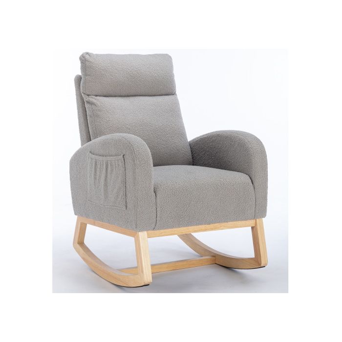 Fauteuil à bascule, Mid Century Modern, tissu peluche, rembourré, assise rembourrée, pour salon et chambre à coucher, gris clair