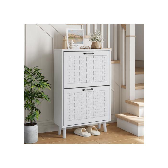 Meuble À Chaussures - MUVOE - Fait Main - 2 Tiroirs - Bois Massif - Design Bohémien