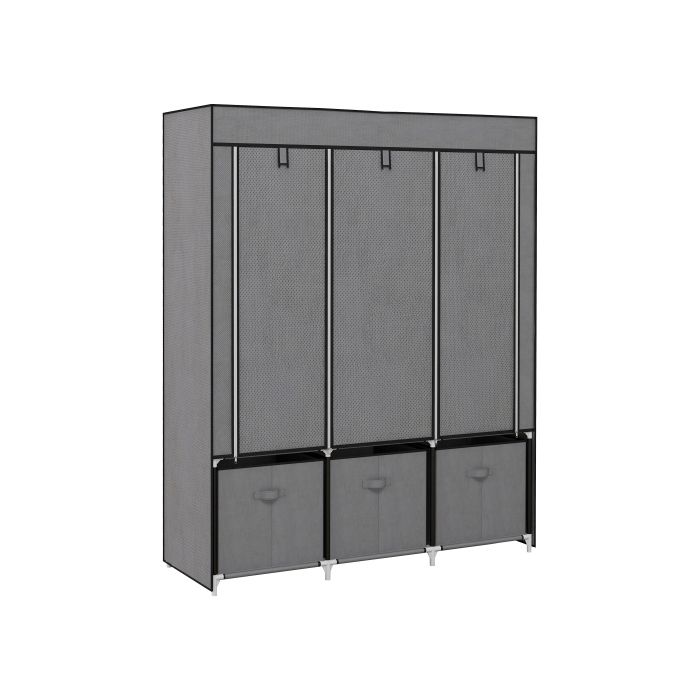 Fabric Wardrobe - HOMCOM - Foldable - 125x43x162.5 Cm - 3 Drawers - Dark Grey