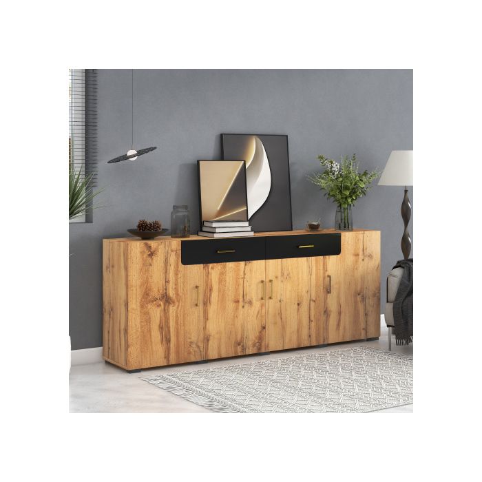 Sideboard, Armoire De Cuisine, Armoire De Rangement , 208 X 39.5 X 80 Cm, Commode Avec 4 Portes, 2 Tiroirs, Buffets