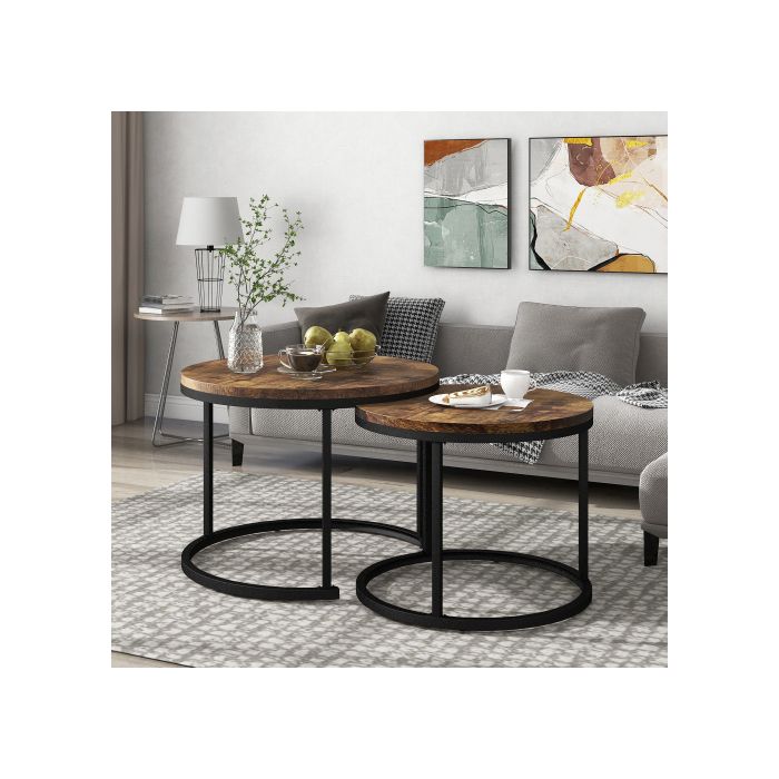 Table Basse Ronde - MUVOE - Lot De 2 - MDF - Métal - Design Moderne