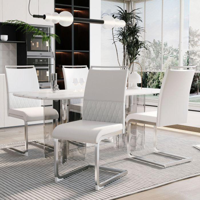 Chaise De Salle À Manger - Moderne - Lot De 4 - Simili-cuir PU Et Lin - Dossier Haut Rembourré - Blanc