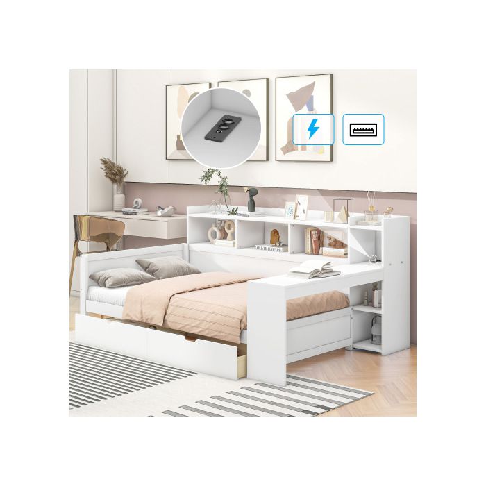 Canapé-lit - MUVOE - 90 X 200 Cm - Blanc - Prise USB - 2 Tiroirs De Rangement