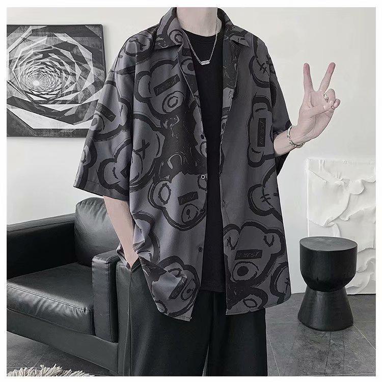Men's Summer 2021 Korean-Style Casual Loose Print Half Sleeve Shirt