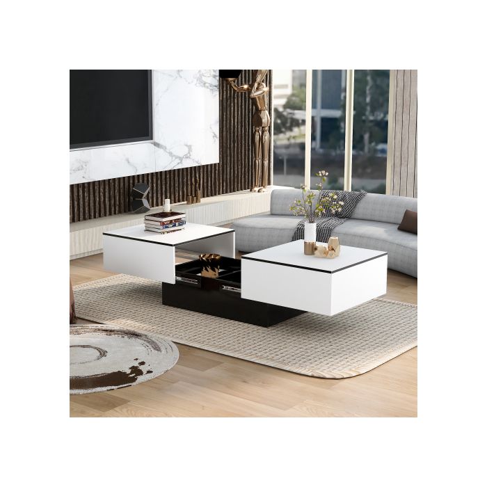 Table Basse - MUVOE - Universelle - Haute Brillance - Plateau Extensible - Espace De Rangement