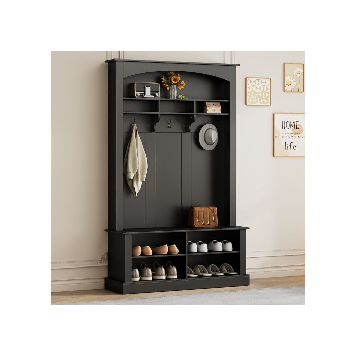 Meuble D’entrée - MUVOE - Kit Vestiaire - 3 Crochets - Rangement Ouvert - Noir - H190/B120/T40 Cm