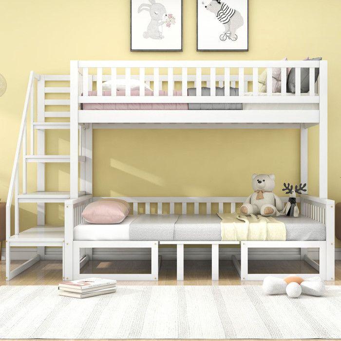 Lit Superposé - MUVOE - 120x200 Cm - Bois Massif - Blanc - Design Peu Encombrant
