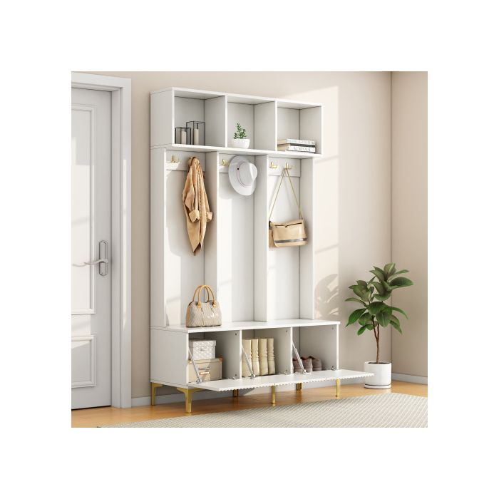 Meuble D’entrée - MUVOE - Ensemble Vestiaire Avec Banc - 6 Crochets - Blanc - Design Contemporain