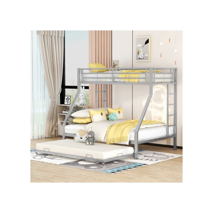 Lit Superposé, Lit En Métal Facile À Assembler Avec Lit Escamotable, 90(140)x200 Cm, Couleur Argentée