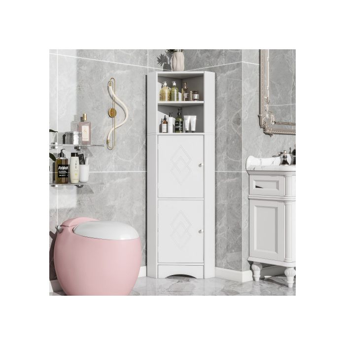 Meuble de salle de bains - MUVOE - Armoire d'angle - 36,5 x 36,5 x 155 cm - Blanc - Multi-fonctionnel