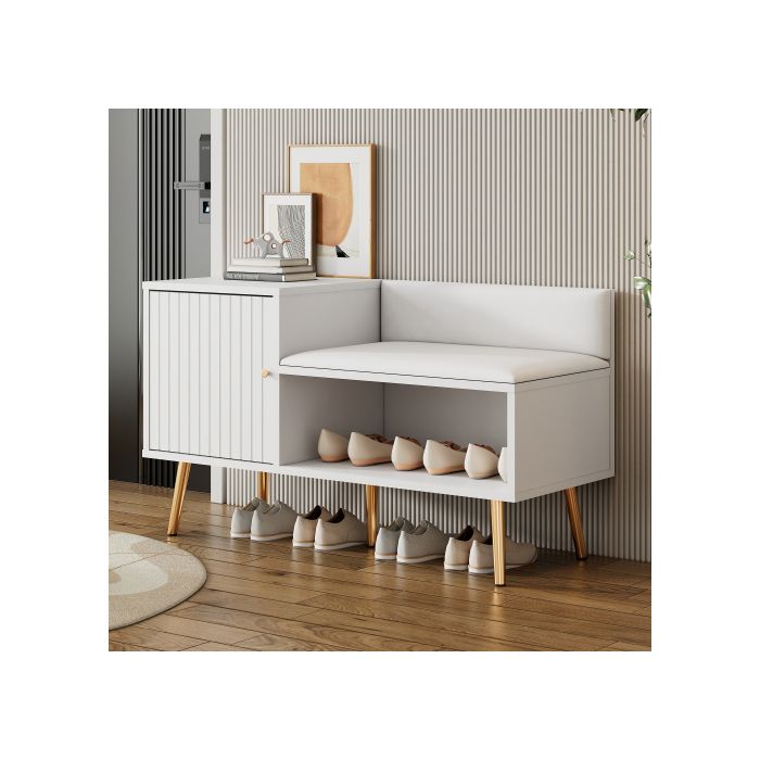 Meuble À Chaussures - MUVOE - Moderne - Blanc Et or - Rembourré - Espace De Rangement