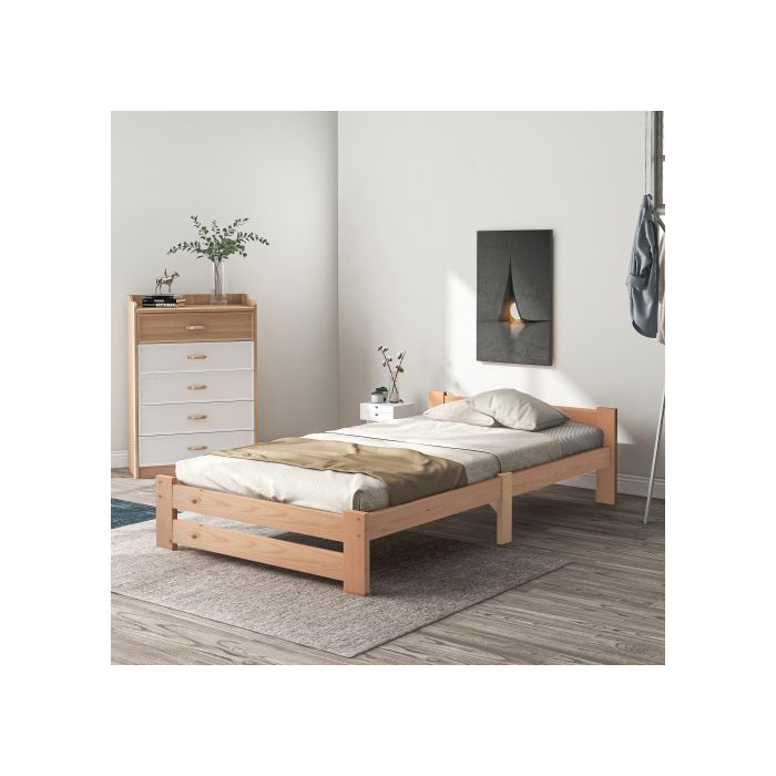 Solide Lit En Bois Massif Lit Futon En Bois Massif Naturel Lit En Avec Tête De Lit Et Sommier À Lattes , Naturel (200x90cm)