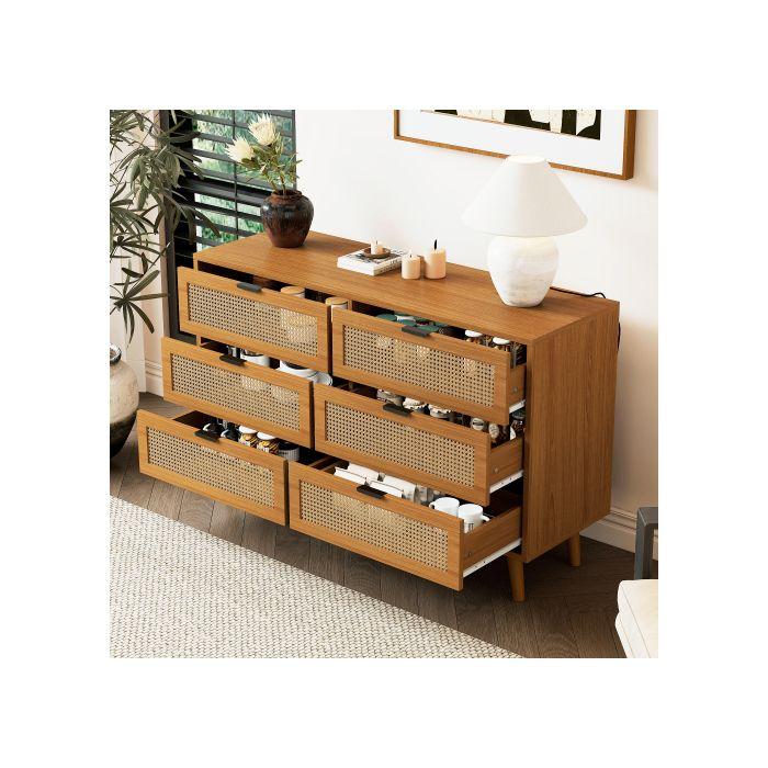 Commode - MUVOE - Vintage - 6 Tiroirs - Bois - Poignées En Métal - L120/H76.5/T40 Cm