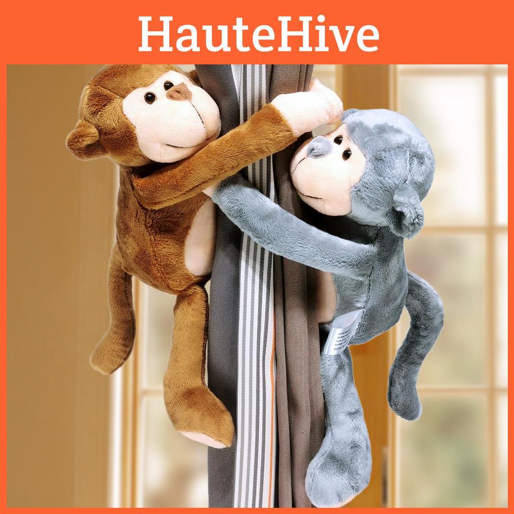 This magnetic curtain clip features a charming monkey plush design, crafted from durable fabric material.it securely holds curtains in place while adding a playful touch to room decor. Customizable options allow coordination with various color schemes, including brown, gray, and white.