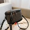 Luxury Retro Design Women's Bucket Shoulder Bag New Fashion Rivet Diamond Small Square Bag Personality High-end Crossbody Bag CLE