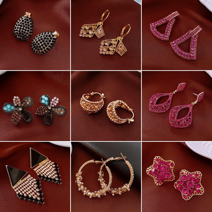European and American Diamond-set Oval Earrings Retro Earrings Niche Light Luxury High-end Earrings Women