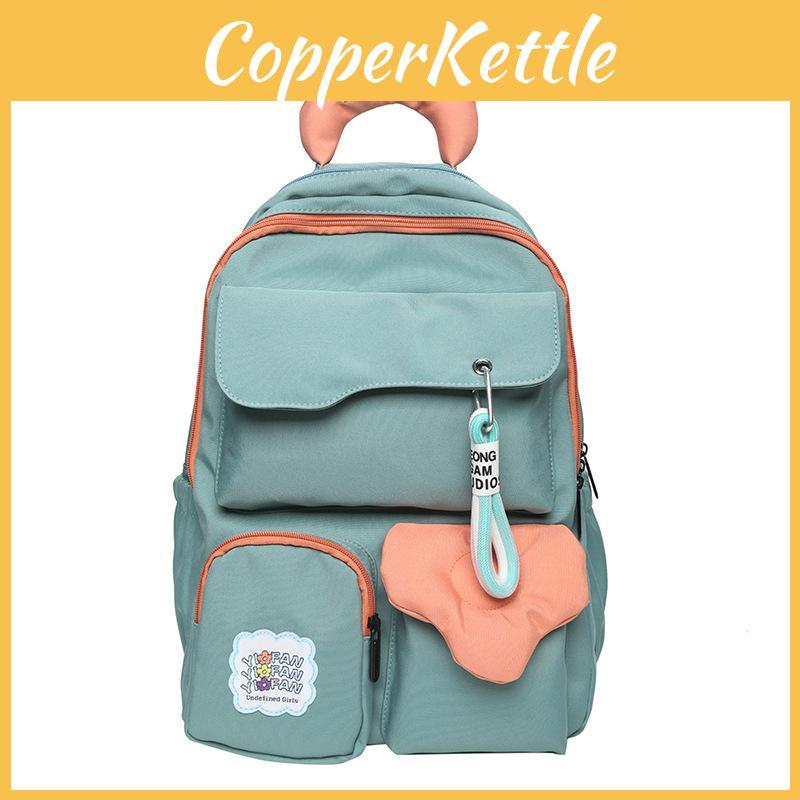 Colorful Handle Embroidered Design Color Blocked Student Backpack For Daily Use