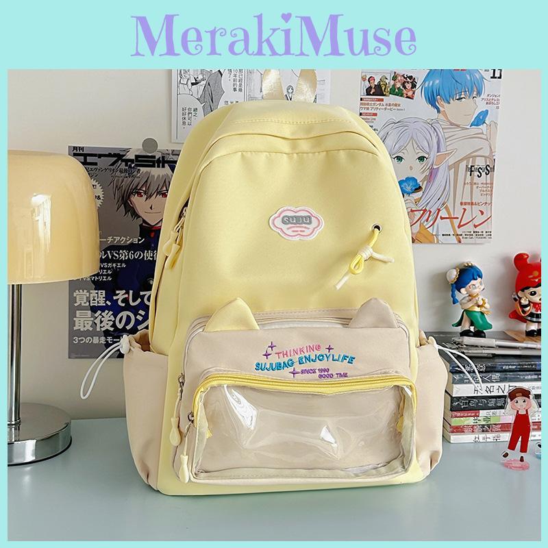 Embroidery Backpack Trendy With Transparent Pouch For Students Outings Casual