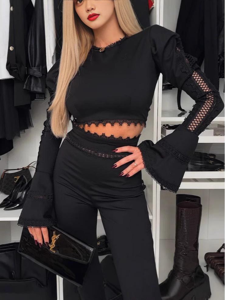 2025 European and American Spring/Summer Lace Slim-Fit Two-Piece Set for Women