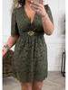 Women's 2025 European & American V-Neck Lace Petal Midi Dress with Waistband, Short-Sleeved, New Style Fashion.