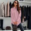 Women's Casual Versatile Solid Color Split Long-Sleeve Loose Shirt