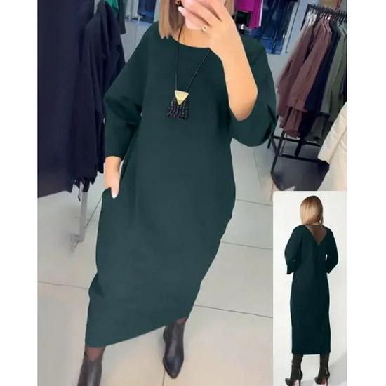 Elevate your seasonal wardrobe with this elegant long-sleeve dress, designed for the 2023 Autumn/Winter collection. Crafted from high-quality polyester, it offers both comfort and durability while ensuring a sleek silhouette. The solid color design provides a versatile and timeless look, perfect for any occasion. Featuring a classic round neck and practical pockets, this dress combines functionality with style. Ideal for both casual outings and more formal gatherings, it's a must-have addition to any fashion-forward woman's closet.