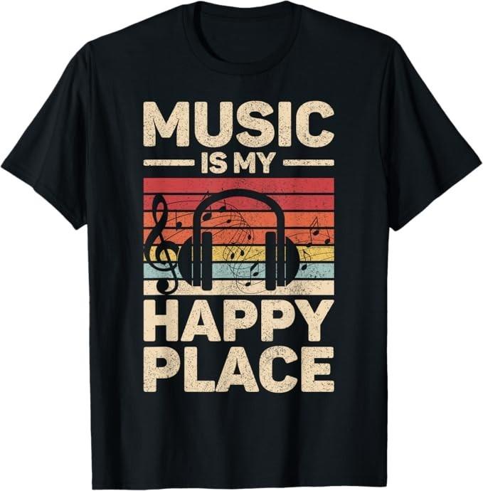 Music Is My Happy Place Musician Outfit EDM Music Lovers DJ T-Shirt