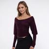 Q25TP254 Versatile Low-Neck Lantern Sleeve Ruched Short T-Shirt for Summer and Autumn