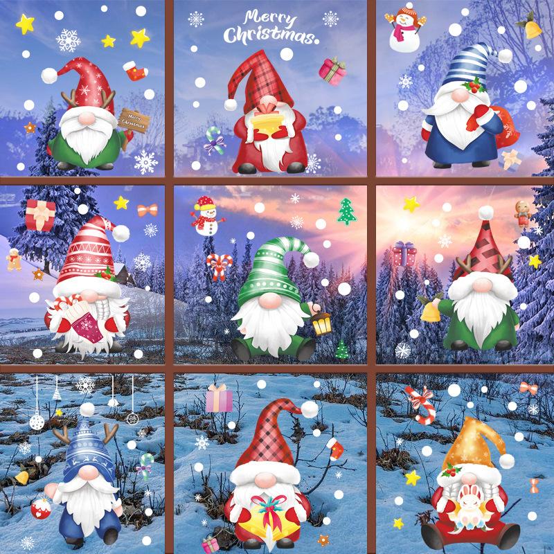 Cartoon Santa Claus, Festive Atmosphere, Store and Shopping Mall Window Decoration, Scene Arrangement, Static Glass Stickers
