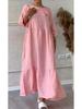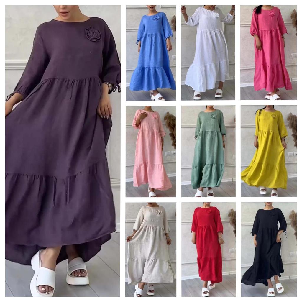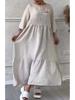 Explore style and comfort with this fashionable women's casual dress designed for both European and American tastes. Featuring a round neck and long sleeves, this dress offers a timeless silhouette. The drawstring detail and back tie add a touch of elegance and adjustability, allowing you to tailor the fit to your style. Crafted from a soft blend of cotton and linen, it promises breathability and comfort. This solid color dress is perfect for any casual outing, effortlessly combining simplicity and sophistication.